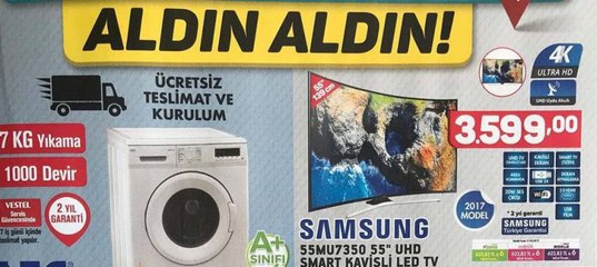 2 yıl garantili kaviisli ekranı ve dahili uydu alıcısı ile ön plana çıkan samsung smart kavisli led tv 3599 tl. Kiwi cyclone elektrikli süpürge 109 tl. A101 market mağazalarında 19 ekim 2017 tarihinden itibaren satışa sunulacak seg scm 7100 t çamaşır makinesi 7 kg yıkama 1000 devir 15 program gibi özellikleri. 3 sayfada acer notebook ve tadilat araç gereçleri 4.