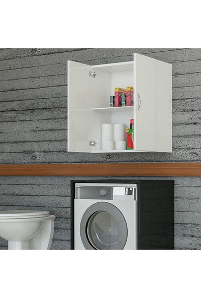 Banos cd2 çok amaçlı banyo üst dolaplı çamaşır makinesi dolabı takımı beyaz.