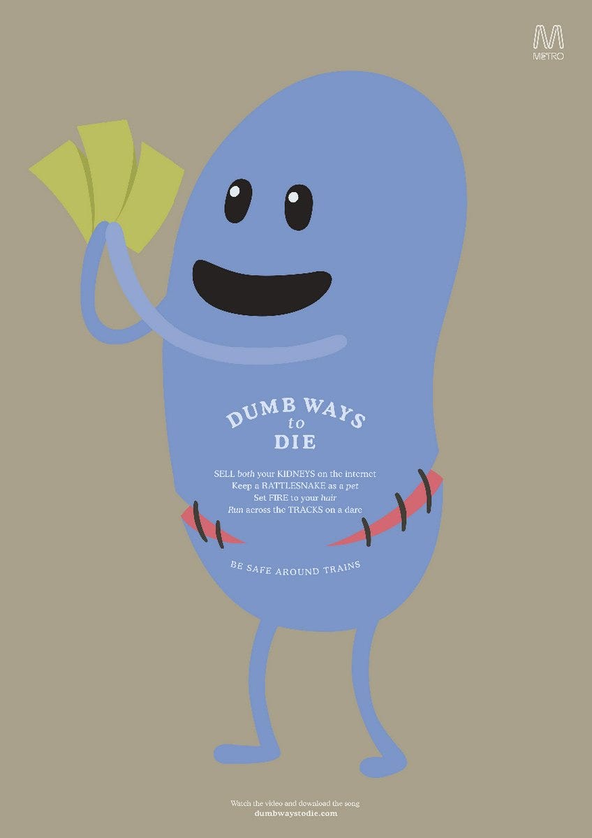 Learn vocabulary terms and more with flashcards games and other study tools. Dumb ways to die 2 bölüm 1 duration. Dumb ways to die illustrations 11 8 13 awesome characters. Facebook gives people the power to share and makes.
